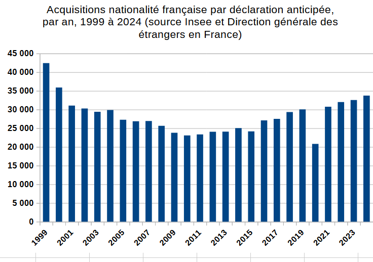 Vous connaissez sans doute la voie des “naturalisations“. Et celle des mariages. Mais quid des “déclarations anticipées” ? Cette sous-catégorie est systématiquement ignorée et pourtant elle représente un tiers du total… C’est surtout sa dynamique qui est effrayante, pardon intéressante…