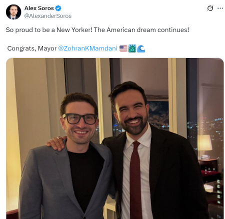 Ajoutons un élément qui échappe comme d’habitude aux crétins européens : Mamdani a été CONSIDERABLEMENT aidé par les super donateurs du parti Démocrate et leurs relais financiers (Soros, et autres milliardaires californiens dégénérés, etc.). La moitié des donations pour sa candidature venait de l’extérieur de l’état de New York, prouvant l’existence d’un mouvement national et d’une organisation.