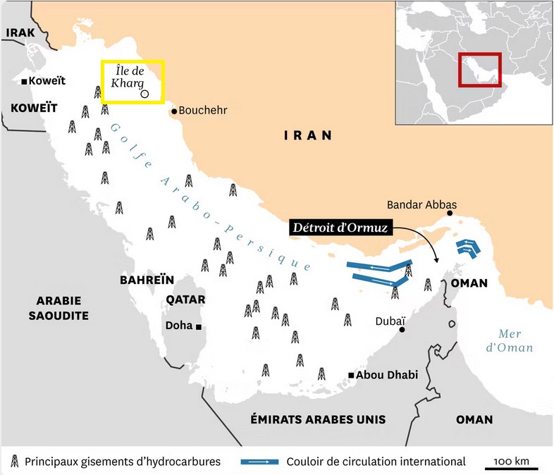 Et du côté israélo-américain, la cible est toute désignée, clignotant de mille feux : l’île de Kharg, les “joyaux de la couronne” comme le rappelle Trump lui-même dans son message. L’île, située à 25 km des côtes, assure 90 % des exportations iraniennes de brut (1,5 à 2 millions de barils par jour).